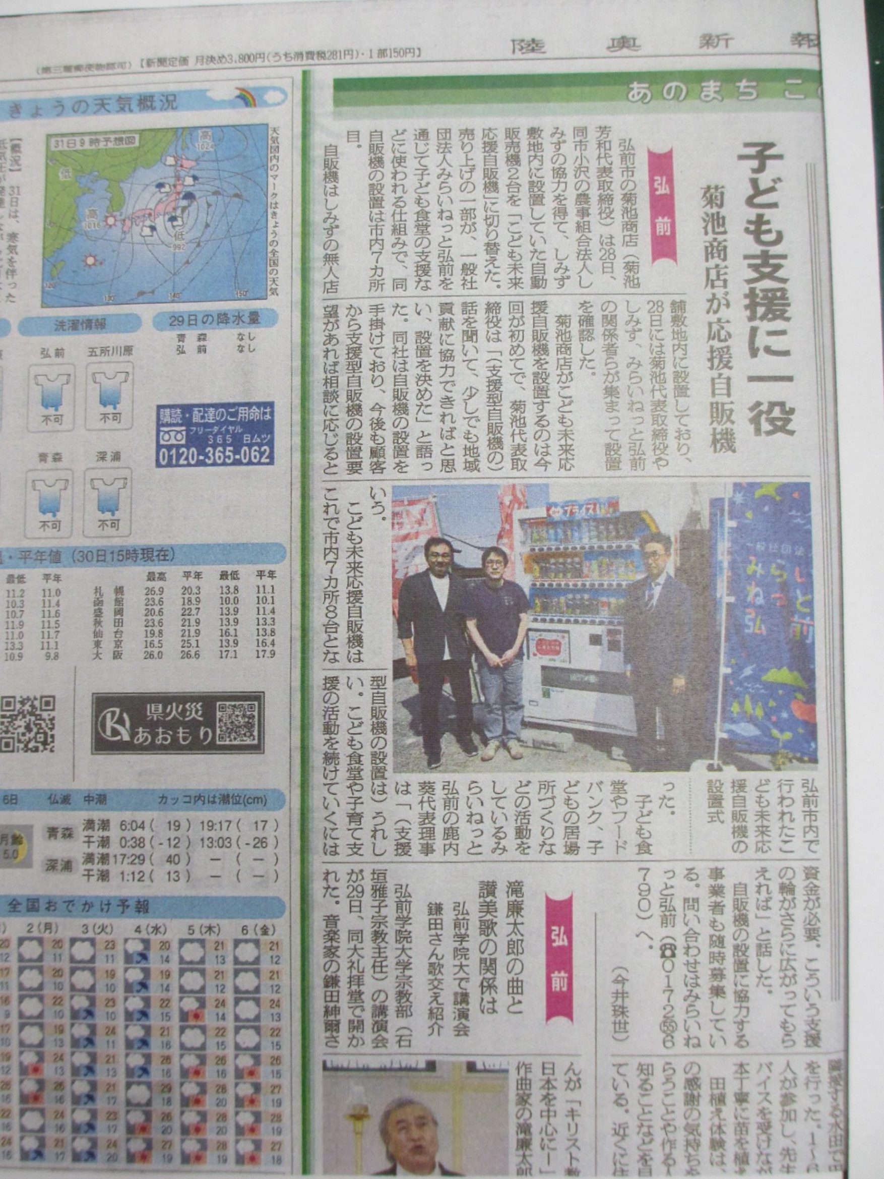 令和7年5月28日に、小沢の農事組合法人しみず様のご協力を得まして、設置していただいている2台の自販機を「こども未来応援自販機」に切り替えさせていただきました。